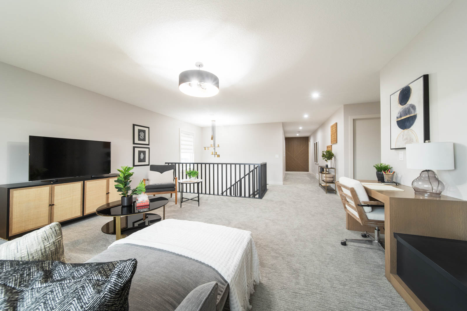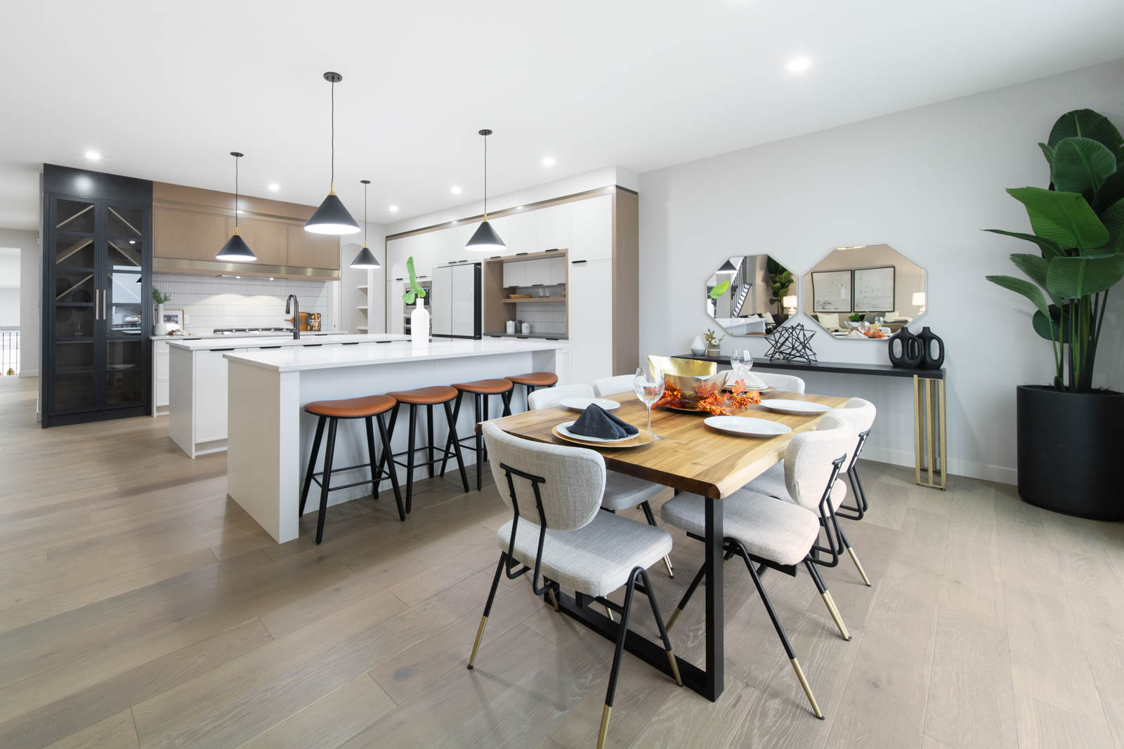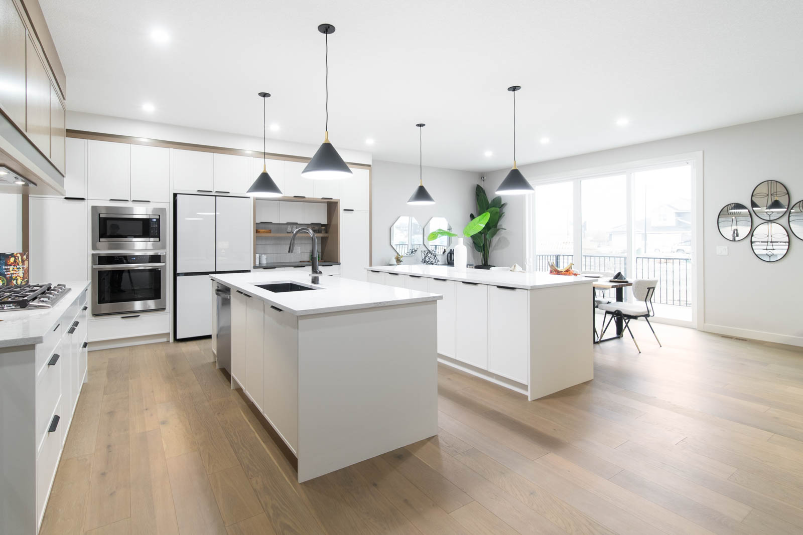 Our new Okotoks showhome, The Arbour, boasts 3327 sq. ft. with a 3-car garage, walk-out basement, an executive kitchen with two islands, quartz countertops, and a walk-thru pantry. Busy households will love the huge back mudroom, front foyer, home office/flex space, powder room, and large bonus room.