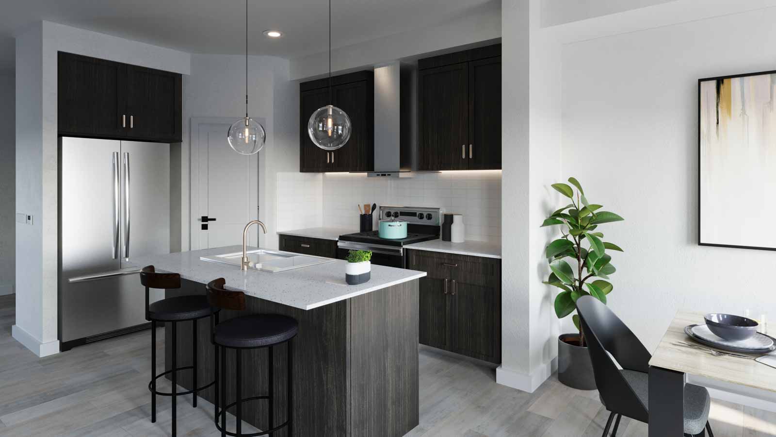 This 3-bedroom, 2.5-bathroom 1400 sq. ft. home features laundry on the upper floor, with the primary bedroom having a walk-in closet and ensuite.
